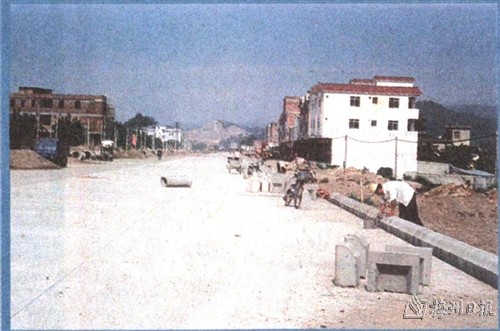 梅县各镇在“三个代表”重要思想学习教育活动中,注重转变干部作风,积极为群众办好事实事。图为雁洋镇按公路示范段的要求,拓宽、完善圩镇2.1公里道路。