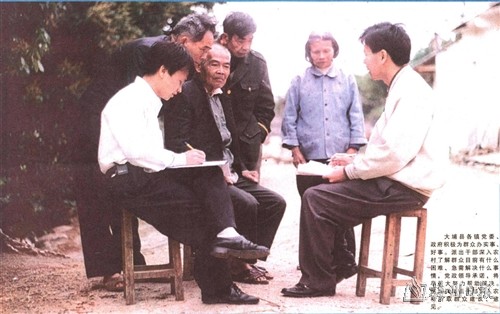 大埔县各镇党委、政府积极为群众办实事、好事。派出干部深入农村了解群众目前有什么困难、急需解决什么事情,党政领导承诺,将尽最大努力帮助解决。图为枫朗镇干部深入农村听取群众建议、意见。