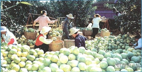 1995年,我市被首批百家中国特产之乡组委会命名为全国“金柚之乡”。我市组织农业专家围绕金柚实现优质、早结、丰产进行认真探讨研究,使金柚栽后原需6至8年方可结果缩短为3至4年,亩产由原来的几百斤,变为几千斤,增长近10倍。平均亩产1148.5公斤,丰产树一般亩产在3000公斤以上,高的可达5000多公斤。金柚产量全国第一。
