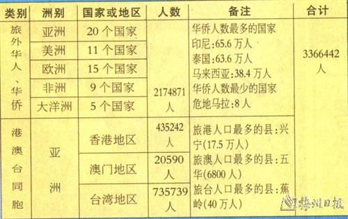 梅州旅外“三胞”分布一览表