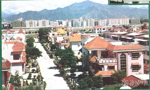 梅州侨乡巨变,下图为梅县华侨城商住区,右图为梅县过去的农村民居。