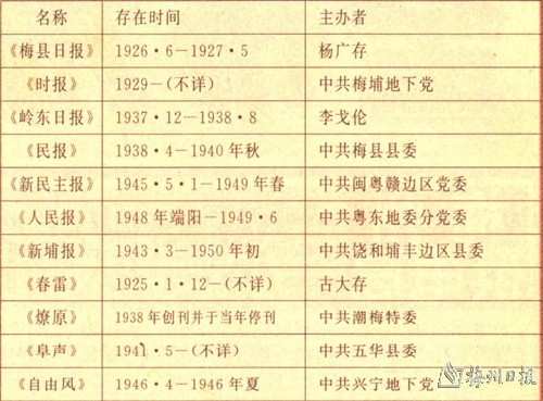 注:梅州市从清末开始创办报刊。抗日战争时期是梅州地区报刊业鼎盛时期。至1990年底止,全市先后创办过168种报纸和刊物。