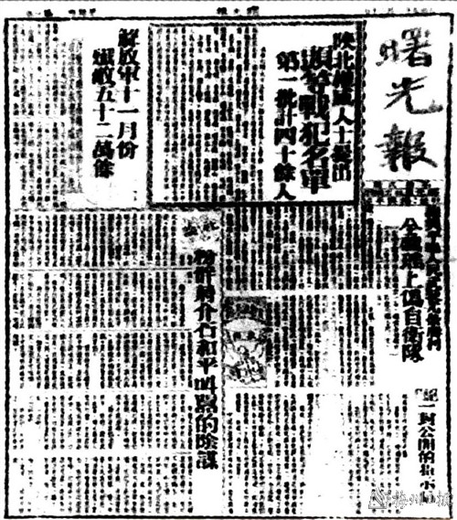 一九四九年,梅州党组织大量翻印进步报刊,在领导各县学生开展爱国民主运动中发挥了积极的作用。图为《曙光报》。