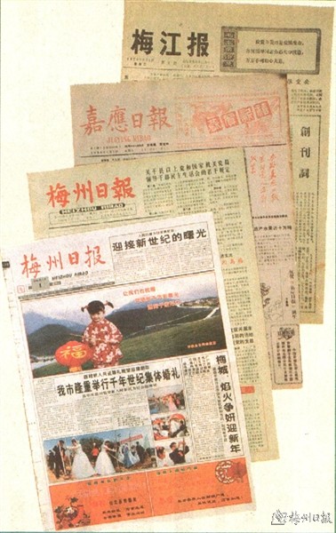 《梅州日报》前身《梅江报》于1988年元旦改为日报,并更名《嘉应日报》,为地区改市建制后的中共梅州市委机关报。1990年7月1日,更名为《梅州日报》。1997年至现在,《梅州日报》实现了历史性的三大跨越:自办发行、代印报刊、扩版彩印。1999年1月1日起,《梅州日报》开始自办发行。2000年1月1日,《梅州日报》实现了从每日对开4版到除双休日外每日对开8版并彩印的历史性跨越。2001年1月1日起,《梅州日报》实现了每日对开8版彩印。