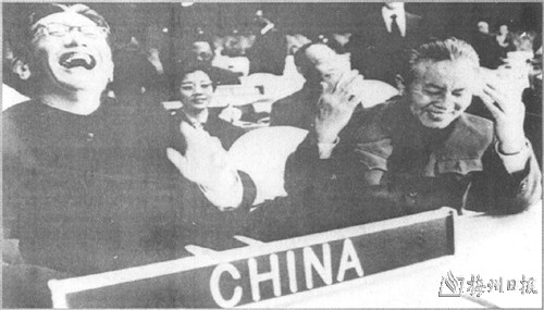 一九七一年,第二十六届联合国大会通过决议,恢复中国在联合国的一切合法权利,并立即把蒋介石集团的代表从联合国及其所属一切机构中驱逐出去。图为中国代表团在第二十六届联合国大会上。