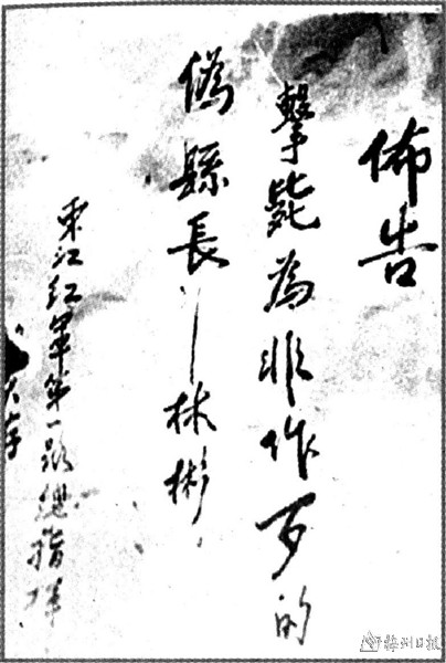 10月,新任的东江特委书记李崇三叛变,十几支游击小分队先后被敌人打垮,最后仅剩下古大存和他带领的18名战士。古大存在和上级失去联系的情况下,在丰顺桐梓洋孤军作战。作为指挥员的古大存一再勉励大家:“现在跟党组织失去联系是暂时的,只要党还在,我们就一定要联系上。”又说:“革命好比炼钢炉,杂质跑掉了,剩下来的就是好钢材。只要大家团结战斗,革命一定能成功!”这支小小的队伍在古大存带领下,转移到大埔山区。期间,他们曾多次派人到闽西南找党,中共南方工作委员会也曾派人来联络,但均未接上头。古大存等不愿消极等待,他们化整为零、秘密串联,以烧炭、做陶瓷为掩护,帮助深山群众组织贫民团、陶业工会,并在斗争中发展党的地下组织。在难以想象的险恶处境中,古大存等度过了两年多的艰苦岁月,保存了一批革命火种,使粤东大地始终高扬着不倒的红旗。(图为1934年5月19日,古大存率丰梅红军游击队在丰顺南哈龙岗设伏,当场击毙伪丰顺县长林彬及其护兵,张贴布告,敌大为震惊。)