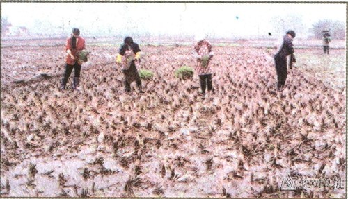 农场引进1000亩集“优质、免耕、抛秧、无公害机械化收割”于一体的优质稻综合示范基地,与400户农户签订购销合同,预计可增收18万元。图为免耕、抛秧操作现场。