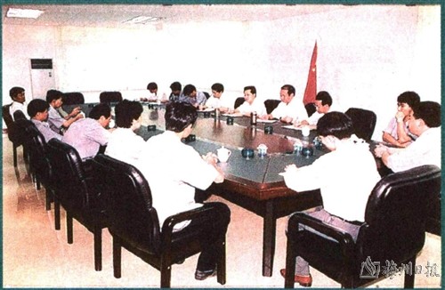 | 公司两个文明建设一起抓,重视提高干部职工的政治、业务素质。图为该公司领导班子成员和中层干部在学习江泽民总书记“三个代表”重要思想。 |