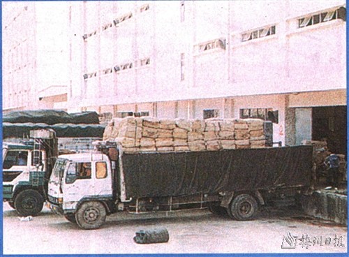 | 由于产品质量可靠,不仅本省各卷烟厂,而且外省卷烟厂都纷纷委托该公司加工烟叶。图为各烟厂的初烤烟进仓的场面。 |