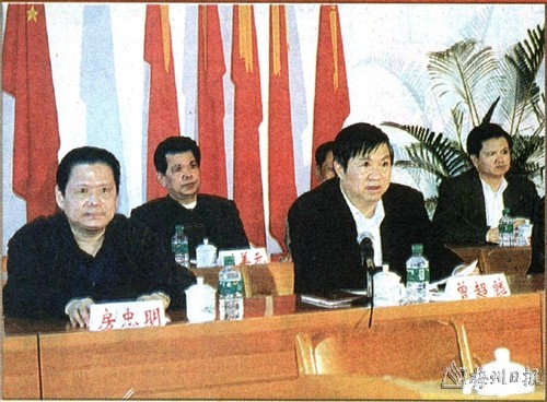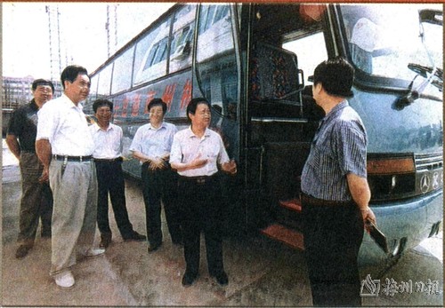 市委常委、常务副市长曾超麟(前排右)到市汽运总公司检查指导工作。
