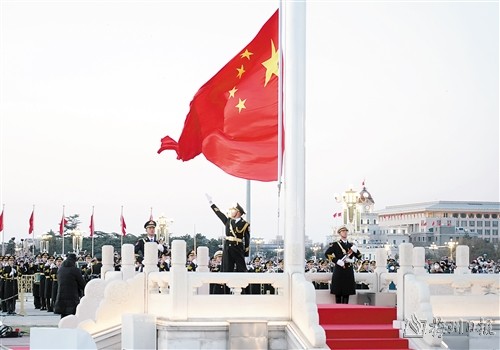 1月1日晨,北京天安门广场举行隆重的升国旗仪式。(新华社发)