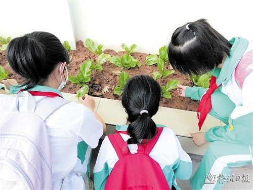 学校把新砌的花池分给学生们自由种植,同学们别提多高兴了,菜秧、种子、花秧齐上阵。看着我们种下的植物一天天长大,我的心里也乐开了花。(兴宁宁中洋岭小学六年级 林紫薇)