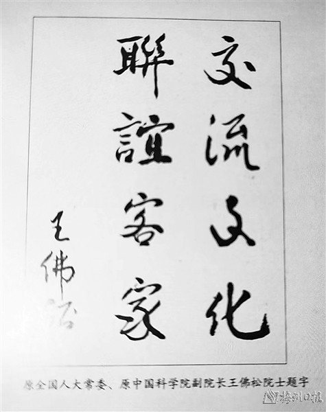 黄纯斌说,王佛松院士的家乡情结和客家情怀很重。2015年,深圳市客家文化交流协会成立时,王佛松院士和曾宪梓博士一道应邀担任协会顾问,王佛松欣然题词“交流文化,联谊客家”寄予厚望。