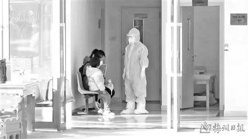 在蕉岭县人民医院,预检分诊医护人员正对前来就诊的患者进行症状问询,初步将有发烧或伴有上呼吸道症状的病人分离出来,指引沿着专区通道前往发热门诊就诊,做进一步评估。“预检分诊的工作人员会将患者指引到我们发热门诊,医生在对患者进行初步诊疗的同时,会对患者进行抗原检测。抗原检测呈阳性的话,医生会进一步评估,如果症状较轻,会给患者开口服药,并让其自行居家隔离。如果是有比较严重基础性疾病的患者,我们会将其收入二楼专科病房进行诊疗救治。”县人民医院儿科发热门诊护士长汤苏婷介绍,发热门诊作为独立设置的独栋建筑,一共四层,分成人和儿科发热门诊,三层、四层为留观区和阳性病区。目前共有50张床位收治阳性病人,接下来计划通过改扩建增加50张床位。