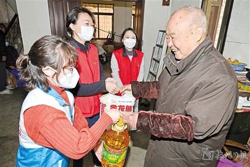 本报讯 (记者梁蕊)新春佳节送温暖,浓浓关怀显真情。日前,梅江区江南街道新中社区党委联合挂点单位市委宣传部、梅江区发改局、中行梅江支行和社区大党委成员单位市国资委、嘉应控股等,开展“岁寒时节见真情 新春慰问暖人心”志愿服务活动,向社区的老党员、困难党员、困难群众、独居老人、参战老战士等63名住户送去新春祝福和慰问,把党委政府的关心关爱送到他们心坎上。