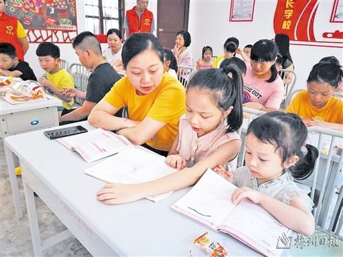 “小敏(化名)因为听力及语言障碍,性格内向、不合群,我也特别关注他的健康成长,每次村里的‘儿童之家’搞活动,我都会喊他过来一起参加。”湖寮镇古城村儿童主任蓝秀娜深知,作为一名儿童主任,不仅要有一颗护苗的爱心,还要有专业的素养。于是,她联合村里的“双百工程”驻点社工一起,为孩子带来了亲子绘画、安全讲座、未成年人思想道德实践等各类活动,让孩子们在家门口就有了兴趣培养、健康保护的“开心课堂”。