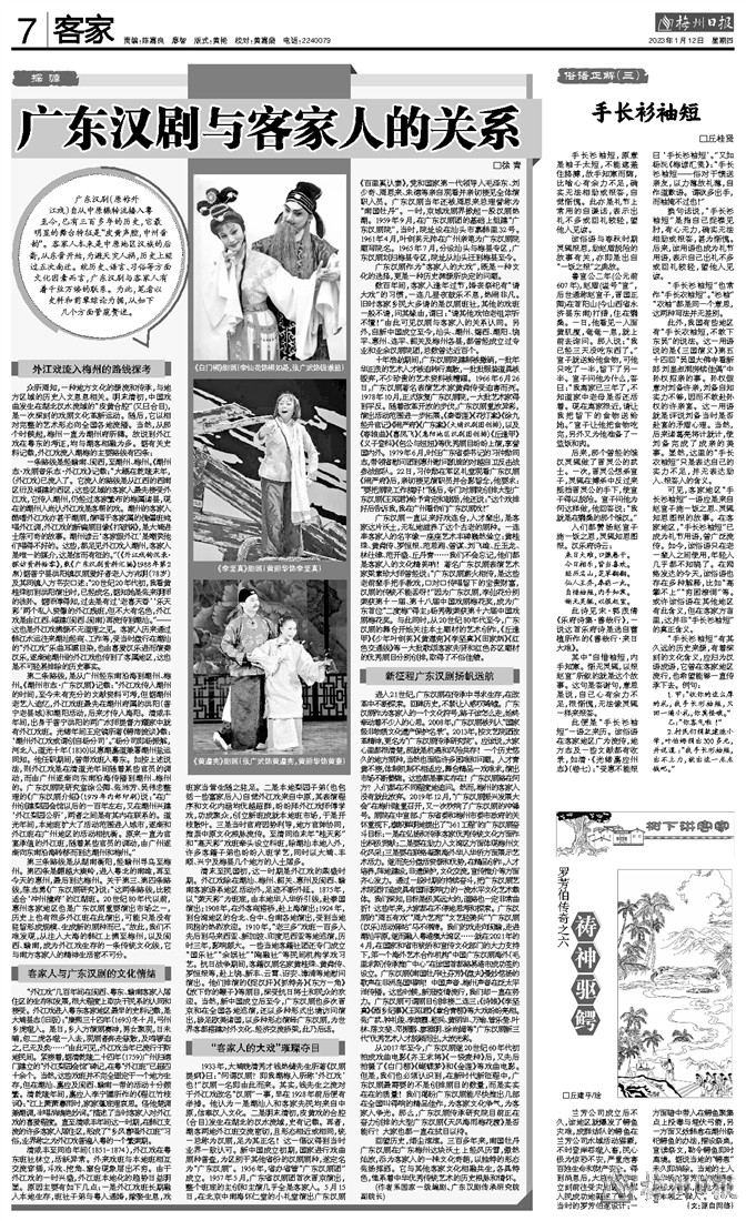可见,客家地区“手长衫袖短”一语应是来自赵宣子施一饭之恩、灵辄知恩图报的故事。在客家地区,“手长衫袖短”已成为礼节用语,曾广泛流传。如今,该俗语只在老一辈人之间使用,年轻人几乎都不知晓了。在网络发达的今天,该俗语也存在多种解释,比如“高攀不上”“穷困潦倒”等。或许该俗语在其他地区有此含义,但在客家方言里,这并非“手长衫袖短”的真正含义。