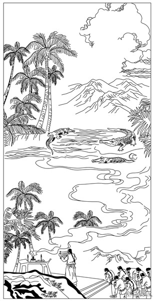 兰芳公司成立后不久,该地区就爆发了鳄鱼灾难,成群结队的鳄鱼在兰芳公司水域活动猖獗,不时登岸吞噬人畜,民心极为惊恐不安,严重危害百姓生命和财产安全。得到消息后,大总长罗芳伯立刻前往受灾地区,指挥人民成功地驱逐了鳄鱼。当时的罗芳伯遂设计:一方面暗中带人在鳄鱼聚集点上投毒与埋伏弓箭,另一方面又效韩愈在潮州祭祀鳄鱼的办法,摆设祭桌,宣读祭文,勒令鳄鱼即时离境。据说当地的“鳄患”未久即消除。当地的土人与华侨对罗芳伯的治鳄手段极为敬佩,视他为有神奇本领之“异人”。