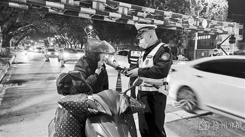 11日晚,记者在梅城广梅路、东山大桥南端等执勤点看到,大部分市民都能遵守交通法律法规,安全文明出行。执勤民警采取逢车必检的方式,对过往车辆进行例行检查。面对民警的检查和酒精吹气检测,摩托车驾驶员和汽车驾驶员都很配合。