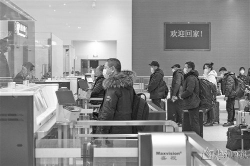 春节将至,百年口岸城市黑龙江省绥芬河市恢复公路口岸旅检通关,旅客陆续入境,与许久不见的亲友重逢。