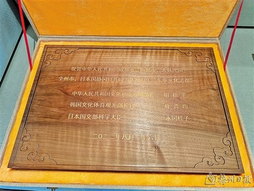 梅州获颁授2023年度“东亚文化之都”纪念牌匾