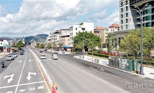 “主路灯采用9+6双头路灯,增加了亮度,交叉路口设置3头高亮灯,保证夜间行车有充分照明。”田进指着新装的路灯说,“人行道设置的庭院灯有平远脐橙元素,兼顾照明和景观效果。”此次改造重新安装了约250盏双挑臂路灯及庭院灯。同时,新种植的桂花、香樟、大叶榕、黄花风铃木和红粉佳人等路树也进一步扮靓了城市。“现在城区处处是风景,路也好走了,散步舒心多了。”家住微利房的姚先生每天都出来散步,对此是感触良多,“以前道路坑坑洼洼,还有积水,现在不会了。”不仅如此,项目围绕道路关键节点拥堵问题,实施了平远大道城南中学至燃料加油站路段约300米双向6车道升级改造、计育站门口路段5车道升级改造、平兴路百盒鲜生门口路段提升改造、S225线延伸至平远大道升级改造、城南中学路口红绿灯建设工程等项目。