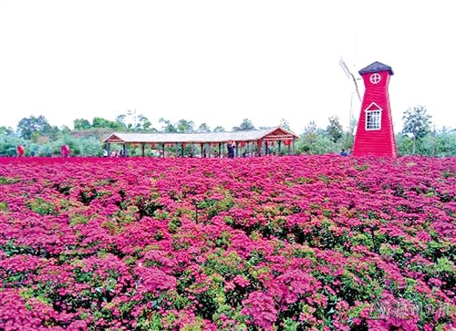 走进四季花海,瞬间被重重花儿淹没,紫红的花,妖艳却又端庄,让人沉醉其中。