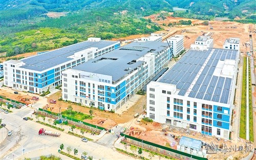 沿着宽敞笔直的园区大道一路向南,记者来到海珠(丰顺)产业转移工业园标准化厂房项目建设现场。只见多台机械设备开足马力,或平整土地、或浇筑混凝土,项目二期工程建设正酣。“目前一期项目主体工程已完工,正在进行绿化管网道路收尾工作。”园区标准化厂房项目经理徐文彬介绍说,该项目总投资11.37亿元,总建筑面积约41万平方米,分三期建设。其中一期工程已于去年6月建成,部分交付丰顺立讯智造有限公司使用。眼下,二期工程建设也开启了“加速度”,将在春节前完成管网铺设工程。