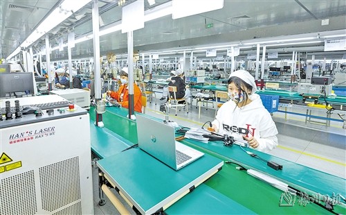 走进丰顺立讯智造有限公司的生产车间,记者看到,32条生产线全速运转,工人们正在忙碌地赶制着该季度的新订单。“2022年我们一期项目100%达产,实现年产值30亿元,年税收1亿元以上。接下来,我们生产线的数量还将翻一番,打造更高端、更规模化的生产线,两期项目全面达产后,提供就业岗位5000个以上。”丰顺立讯智造有限公司项目负责人赵建设告诉记者,目前一线有800多名工人,八成是本地员工。企业采用“总部+基地”的生产管理模式,基地70%以上干部在一线员工中提拔,优越的食宿条件和晋升机制让员工在“家门口”实现安居乐业。
