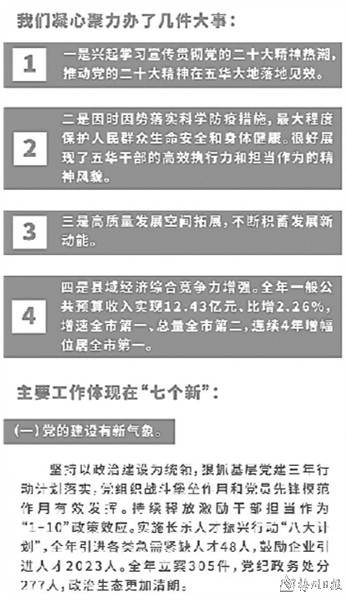 过去一年,县委团结带领全县党员干部群众,深入贯彻党的二十大精神,坚决落实“疫情要防住、经济要稳住、发展要安全”重要要求,按照省委、市委工作部署,深入实施“551”工作举措,全县经济社会各项事业向上向好。