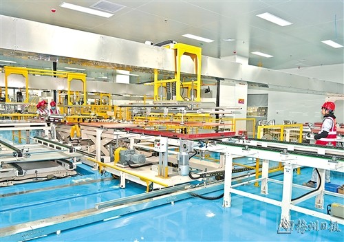 智慧车间里,高度自动化的机器人将一张张覆铜板产品裁切出炉。刚投产不久,广东盈华电子材料公司就接到批量订单,生产忙个不停。该公司副总经理黄小平介绍说:“目前投产的是项目首期年产1200万张高性能覆铜板生产线,力争今年产值达到15亿元以上。未来我们还将持续推进二期、三期项目建设,扩大生产规模。”值得一提的是,去年底,总投资70亿元的梅州盈华年产10万吨高端铜箔项目也在平远落地。平远铜箔产业不断延链、强链,发展势头正劲。
