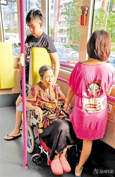 | 一辆公交车上,一位似乎看不见东西的老人坐在轮椅上,轮椅由一个男孩子扶着,老人则牵着女孩子的手。两位年轻人时不时低头询问老人有没有哪里不舒服。那一幕的温暖感动了我。(Lily 拍摄于2019年) |
