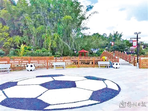 村委会门前,长着一棵丰硕的古榕树,目测一下,树体之大恐怕得要几个成人才能围抱,侧旁,看护小孩的几个妇人正在树下谈育儿心得;蹒跚学步的孩子,则在树下欢快地追逐阳光的影子;广场的一角,喜欢运动的村民,在健身器材上左三圈右三圈地扭着,脸上洋溢着幸福的影子;一阵热闹声传来,原来是身后的文化长廊里,那些下棋的大爷们发出的阵阵掌声,时不时还能听到来自长廊一段悠扬的客家山歌,置身于如此欢歌笑语中,恍惚走进了一个环境优美的公园。