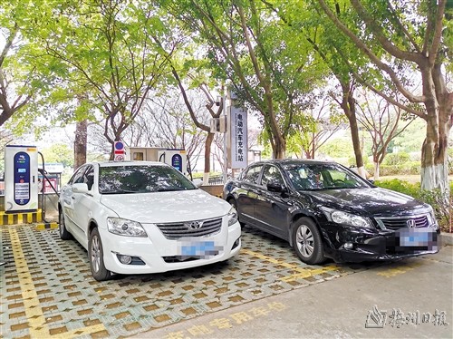 同时,乱停放的现象也出现在景区中。在百岁山郊野公园,一些游客贪图方便,将小汽车随意停放在机动车道两侧,个别车辆被停放在道路转弯处,影响其他车主行车视线。在客家公园停车场,有几辆燃油汽车占用了公共充电桩的配套停车位。