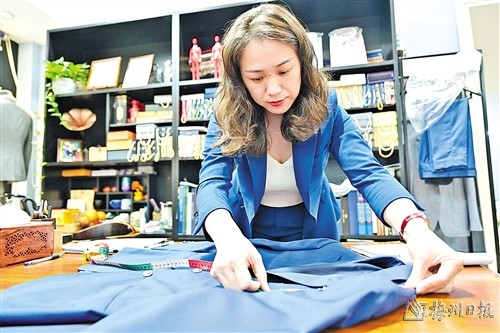 2017年,陈辉霞下定决心成立自己的品牌“高绅”,在梅城租下一间店面,精心布置,正式踏上全品类服装定制的道路,并承接各类团体服装定制。“门店还没装修好,就有朋友找上门要定制制服。”陈辉霞笑说,刚开业时,仅是坐在店里接待朋友,就快把腰坐坏了,常觉得酸痛。“现在我也有了自己的老客户,经常保持联系。”陈辉霞说,过去创业失败的经验教训让她现在更加谨慎,学会紧跟市场,寻找学习机会。