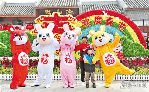 春节假期,万家团圆。在广袤的齐昌大地上,浓郁的年味扑面而来,人们感受亲情,享受团圆,分享喜乐。城乡各处佳节氛围浓厚,和着无限春光,人们在欢声笑语中共度幸福年。图为游客在熙和湾景区参加游园活动(高讯 摄)。