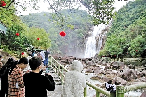 各旅行社代表还组成了采风踩线团,走进丰顺县大宝山温泉度假区、龙归寨瀑布景区等景区景点,为后续组织更多游客游梅州打前站。活动现场,虽然天空飘着雨,却也挡不住采风团成员们的满腔热情,大家被眼前美丽的景色深深吸引,流连忘返。(荣丰)