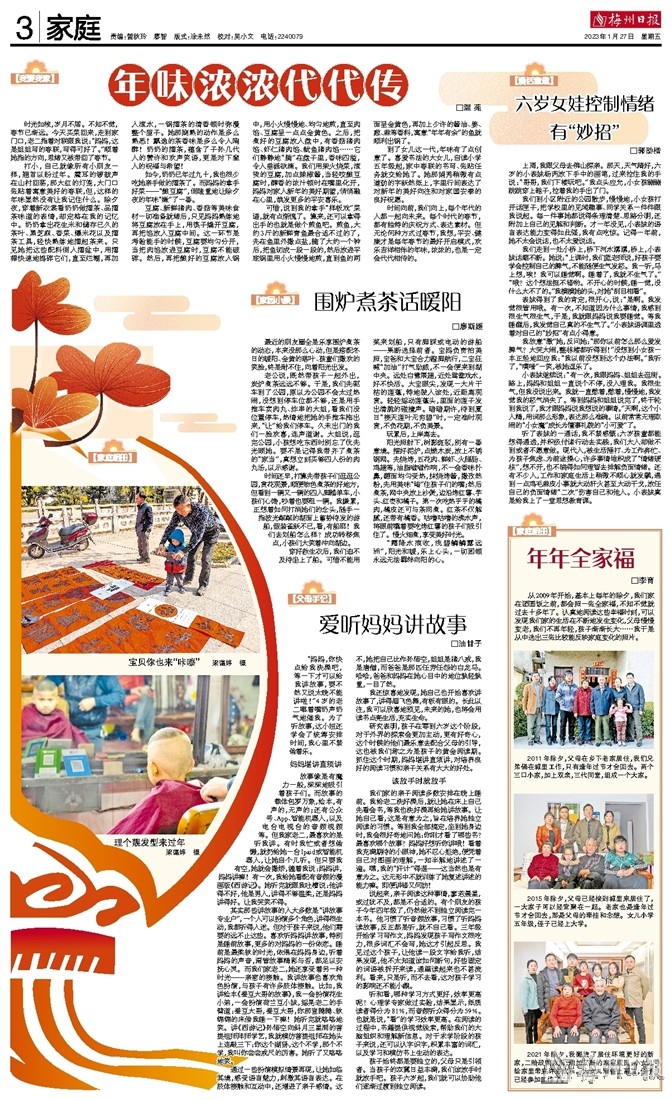 其实那些讲故事的人大多数是“讲故事专业户”,一个人可以扮演多个角色,讲得很生动,我都听得入迷。但对于孩子来说,他们需要的远不止这些。喜欢听妈妈讲故事,特别是睡前故事,更多的对妈妈的一份依恋。睡前是最柔软的时光,依偎在妈妈身边,听着妈妈的声音,甭管故事精彩与否,都足以安抚心灵。而我们家老二,她还享受着另一种时光——亲密的接触。我讲故事也喜欢角色扮演,与孩子有许多肢体接触。比如,我讲绘本《蚕豆大哥的故事》,我一会扮演花生小弟,一会扮演荷兰豆小妹,摇晃老二的手臂道:蚕豆大哥,蚕豆大哥,你那宣腾腾、软绵绵的床借我睡一下嘛!她听完就咯咯地笑。讲《西游记》孙悟空向斜月三星洞的菩提祖师拜师学艺,我就模仿菩提祖师在她头上连敲三下:你这个猢狲,这个不学,那个不学,我叫你尝尝戒尺的厉害。她听了又咯咯地笑。