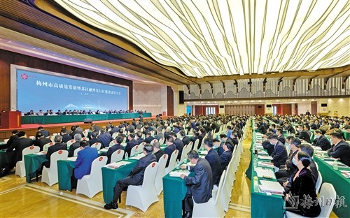 王晖强调,本次会议充分体现了市委、市政府抓高质量发展和先行区建设的强烈责任感、紧迫感,向全社会释放出加快推动高质量发展的鲜明信号。全市上下要认真学习领会此次会议精神,奋起直追、竞标争先,找准工作的着力点和结合点,进一步凝聚高质量发展共识、汇聚团结奋斗的强大合力。各级各部门要只争朝夕、迅速行动,转作风、强执行,狠抓工作落实,各级领导干部要敢担当、敢作为,解放思想、守正创新,推动各项工作往前赶、往深做、见成效。希望广大企业家抢抓机遇、铆足干劲,积极把握我市建设先行区、大力发展实体经济等重大机遇,努力把企业做强做优做大。梅州市将持续优化营商环境,全面构建亲清政商关系,为企业发展提供优质服务,让各类企业在梅州深深扎根、枝繁叶茂、实现更好发展。