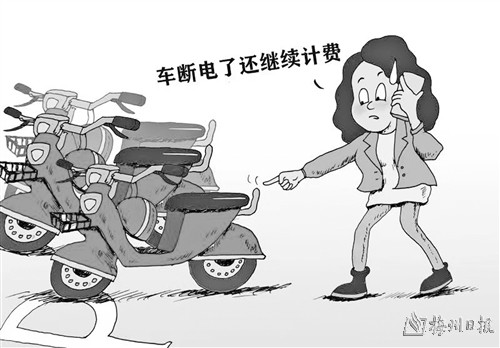 近日,梅城市民赖女士骑行共享单车途中,车辆突然断电,但无法归还车辆,而计费一直在继续,最后被扣33元。赖女士不敢把车丢在路边,花了二三十分钟将车推到一个停车点,但是头盔无法锁上,车辆始终无法归还。她联系客服,对方只是远程简单指导,并没有帮助结束计费并返还多收的费用。担心离开后共享单车被人偷走,赖女士甚至还报了警。 朱权/图