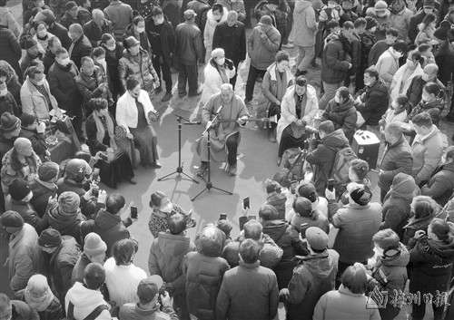 当日是正月十三,时隔三年,河南省宝丰县马街书会线下“重启”。来自全国各地的说书艺人负鼓携琴,聚集于此。在麦田中,他们以天作幕,以地为台,说书会友,弹唱献艺。