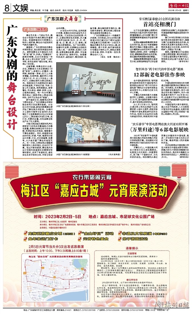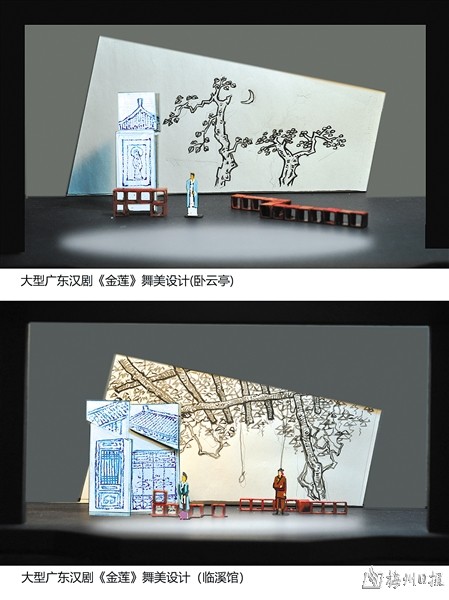 兴梅文联试验汉剧团和民声汉剧团学习采用多种幕镜框式的舞台装置,使舞台表演空间与后台分割,把剧场观众的视线、情绪集中于舞台表演区。同时,根据剧本规定的时间,环境、气氛、情调而分场设计布景、灯光,并安排套景、抢景等,大大地丰富了舞台的造型艺术。另一方面,为帮助观众理解剧情和剧中人物的唱念,还设幻灯字幕。经过不断的探索,舞台美术的设计和制作根据剧本的需要和导演的要求,采用了有虚有实,虚实结合及有平面有立体、平面立体结合的布景。