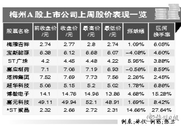 上周梅州9家上市公司股价7家上涨2家下跌,整体以反弹为主。
