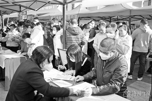 记者在招聘摊前看到应聘者络绎不绝,其中不少是从外地返平的求职者。90后青年吴化龙便是其中一位。他告诉记者,自己一直在浙江金华打工,这次回乡过春节,听说平远不少企业各方面条件都不错,便决定留下来工作。“希望能成功入职。”吴化龙说。