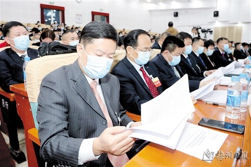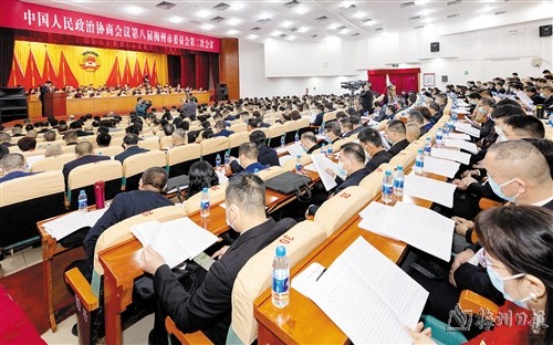 市政协委员认真听取市政协常委会工作报告。(高讯 摄)