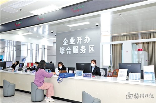 在五华县政务服务中心,前来办事的群众络绎不绝。宽敞明亮的办事大厅内,“不为不办找理由,只为办好想办法”“我们承诺:办得更快,服务更好”等标语悬挂在显眼位置,工作人员积极耐心、热情周到的服务态度和高效快捷的办事效率,受到办事群众的称赞。“当前企业开办主要通过网上办理,现在窗口主要办理变更、注销、备案登记。”在企业开办综合服务区,工作人员杨雯怡告诉记者,春节上班后,窗口每天办结业务量15笔至20笔。五华县政务服务数据管理局副局长陈思德表示,目前县政务服务中心集企业开办登记服务、税务办理、金融服务、法律咨询、自助办事服务于一体,极大方便了群众和企业办事,将为地方发展提供强有力的办事服务支撑。