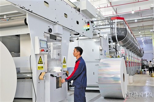 在广东泰金智能包装有限公司,100多名员工已全部返岗,繁忙的生产线上,一卷卷原材料纸张经过印刷、烫金等工序后,变成了一张张精美规整的卷烟包装成品,热火朝天的生产场景昭示着公司发展前景产销两旺,让人干劲十足。“今年订单多,全部生产线加足马力忙生产,预计今年总产值能达1.5亿元,比去年增长50%左右。”该公司相关负责人罗凌志表示,该公司于去年下半年新增了2条生产线,为业务的快速增长提供了保障。