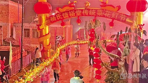 2月5日,砂田菜花灯迎游活动在岳坑存饶裕堂上演。砂田菜花灯是梅州市市级非物质文化遗产项目,距今已有三百多年历史。每年正月十四、十五之夜,砂田镇的村民会采摘盛开的油菜花,制成花灯,以庆祝丰收。