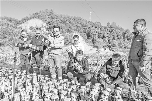 “广育村有一处撂荒地。在我们工作队的推动下,已经复种了木耳。这几日,工人都忙着采摘第二茬新鲜木耳。”来自广州市科技局农村和社会发展科技处的队员张林介绍说。驱车穿行山道,来到一处基地,只见一排排乳白色的菌棒上长满肥厚光亮的黑木耳,众多村民们穿梭往来菌棒行列之间,有序采摘、搬运。