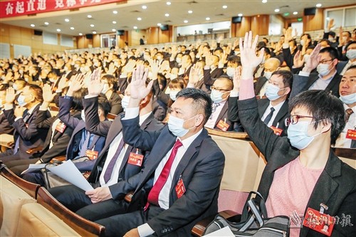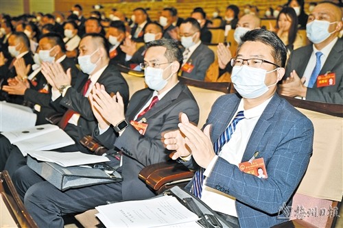 人大代表们听取报告时热烈鼓掌。(钟小丰 摄)